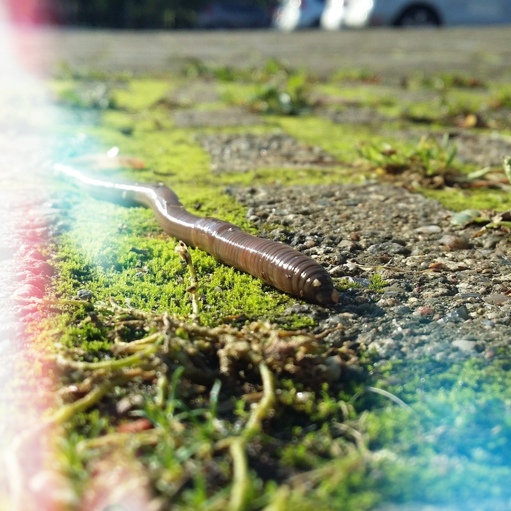 비가 와 축축하게 젖은 땅에서 스멀스멀 올라오는 지렁이.